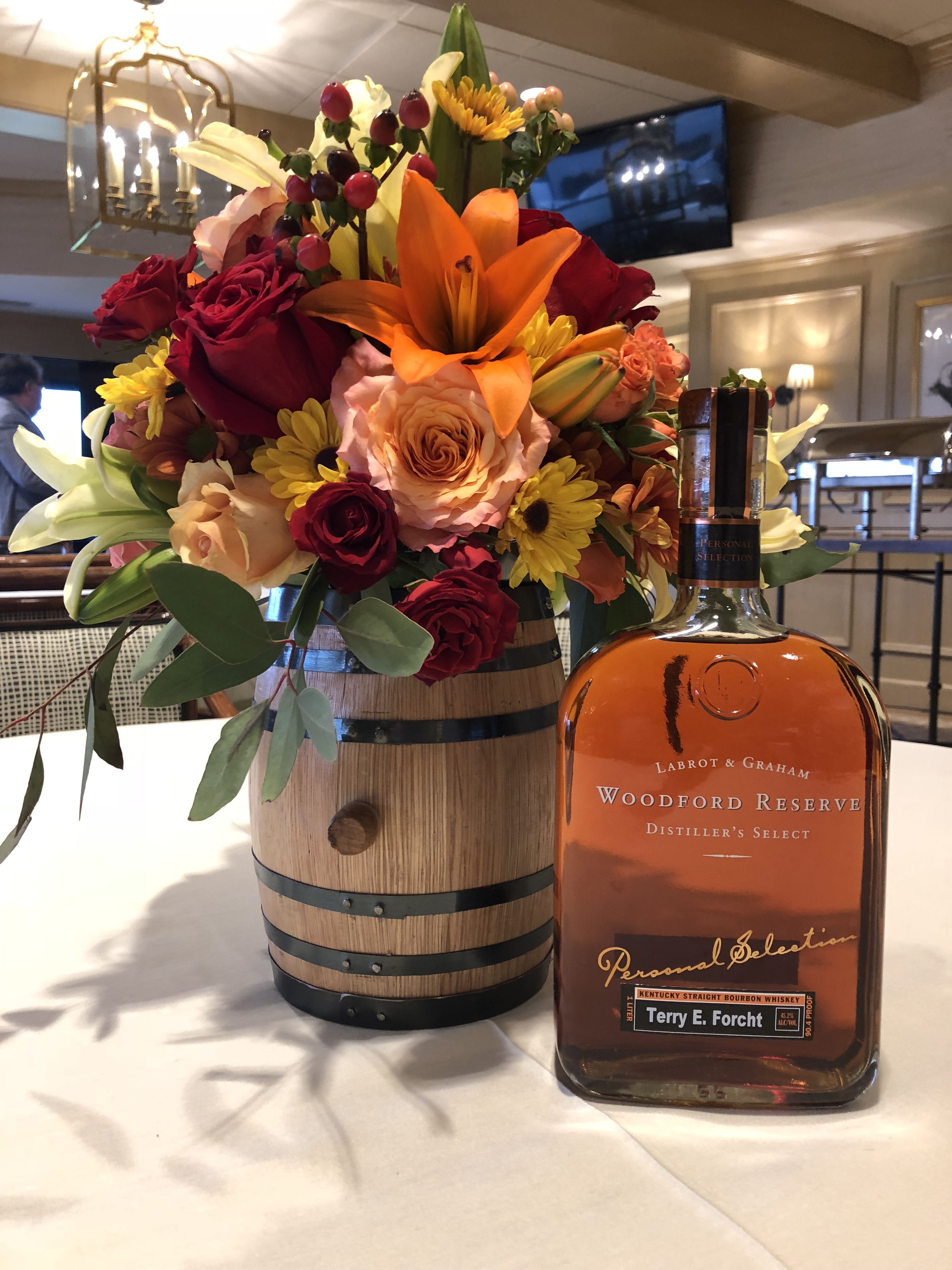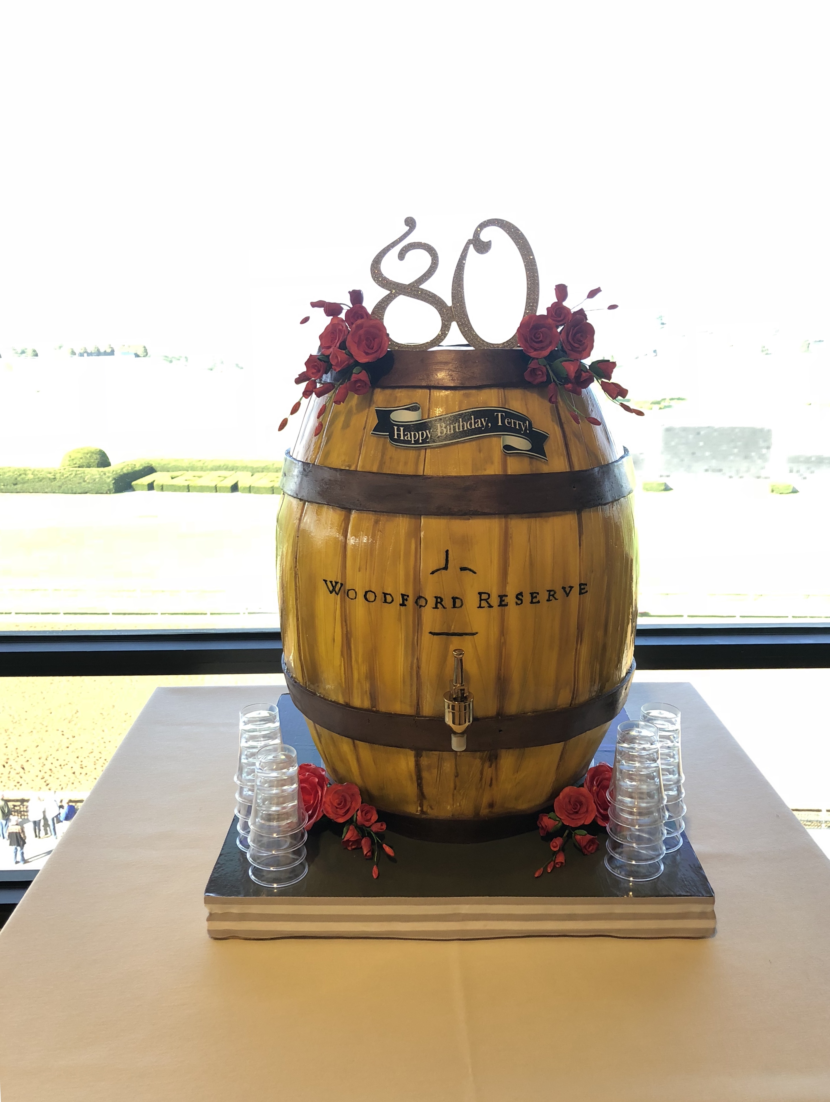 The top story was “New Baby has Bright Future” announcing his birth, articles discussing Clark Gable’s movie Test Pilot on top of the charts, the outcome of the Red Sox and Yankees game, Joe Louis winning his boxing bout, Lawrin winning the Kentucky Derby and many more interesting news bits. Perhaps one of the most fun things about the event was the birthday cake that was shaped like a bourbon barrel and poured actual bourbon.